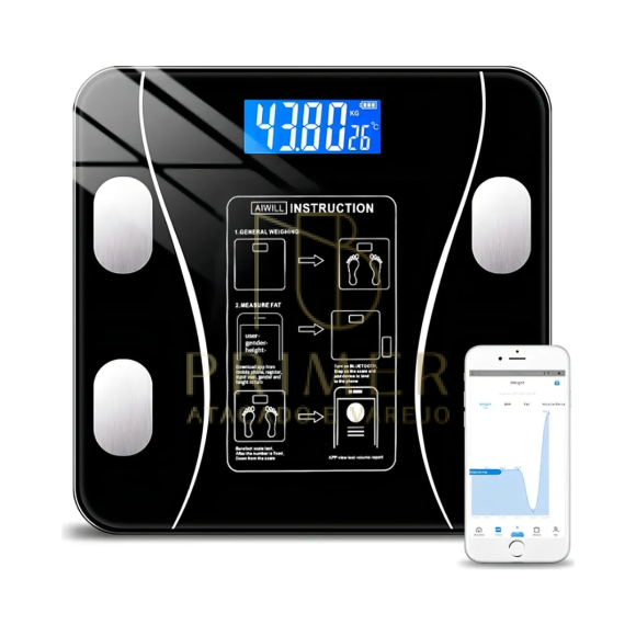 através da condutividade elétrica permite que você tenha uma medição de peso precisa e completa, medindo o seu IMC, gordura corporal, densidade dos ossos, nível de água, idade do corpo e mais!